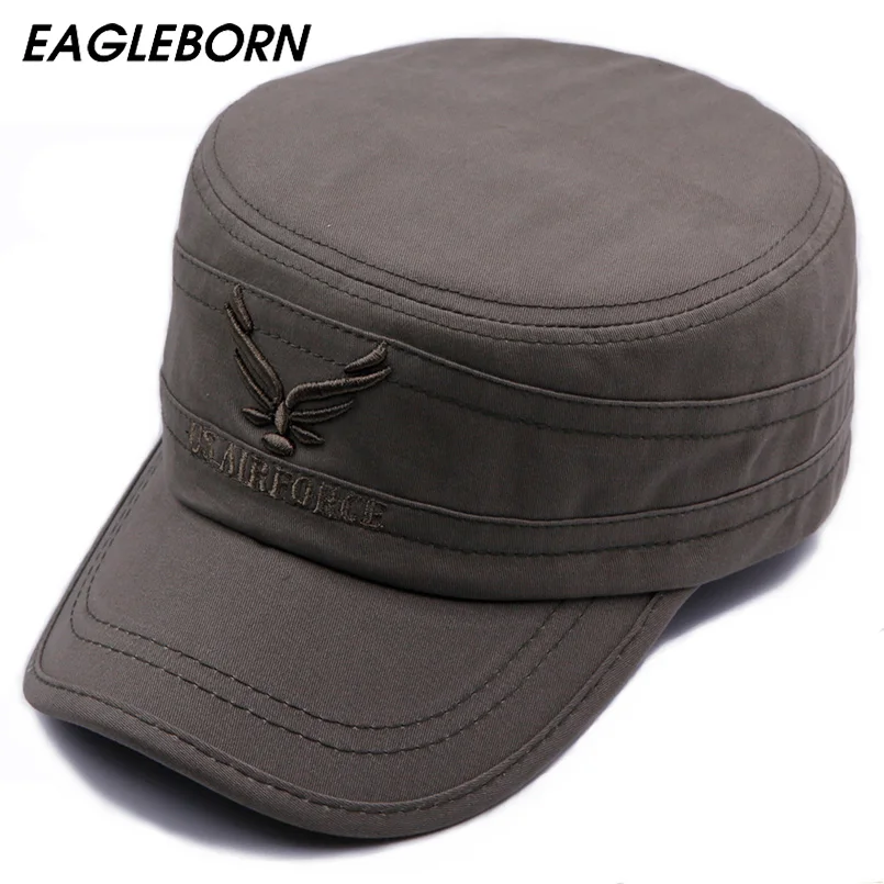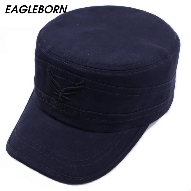 Cotton Embroidered Eagle Flat Top Cap Women Men Snapback Caps Vintage Army Hat Cadet Military Patrol Cap Unisex